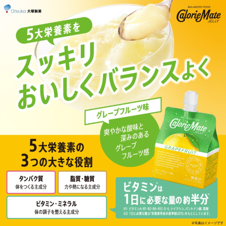 爽やかな酸味と深みのあるグレープフルーツ感。10種類のビタミンをはじめ、4種類のミネラル、タンパク質、脂質、糖質を手軽に補給できるバランス栄養食です。