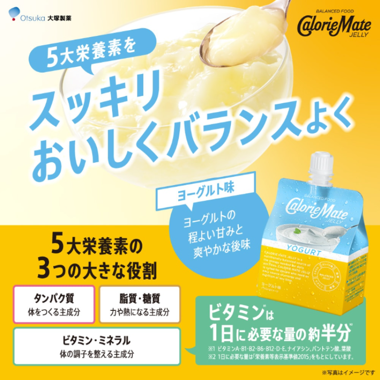 ヨーグルト風味の程よい甘みと爽やかな後味。10種類のビタミンをはじめ、4種類のミネラル、タンパク質、脂質、糖質を手軽に補給できるバランス栄養食です。